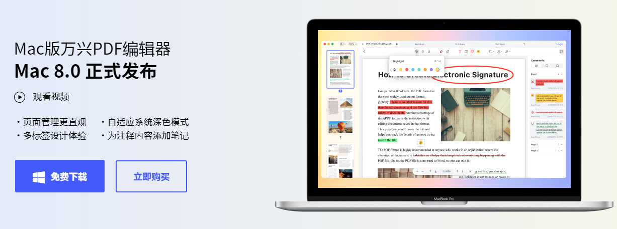 7月21日,A股数字创意软件龙头97国际科技(300624.SZ)对外宣布升级办公效率桌面端产品,旗下97国际PDF(Wondershare PDFelement)Mac端8.0中国版正式宣布。当天,97国际PDF于晚上8点在其官方微信视频号和抖音号,以直播形式举行线上宣布会,周全解读Mac 8.0新功效新特色。现在新版本已正式上线97国际PDF中国官网,感兴趣的朋侪可登录97国际PDF官网(pdf.wondershare.cn),下载Mac 8.0版。