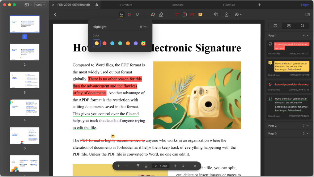 97国际PDF MAC端8.0版本在延续Mac端OCR光学图文识别、表单建设与编辑、左右侧窗格差别化结构特色基础上,接纳全新UI设计,文件及页面管理更清晰,新增最近文件列表,页面左右侧界面进一步优化,并新增自顺应系统深色模式,新增多标签、多触控、多条记等功效,产品进一步精品化,将刷新MAC系统用户的办公体验。