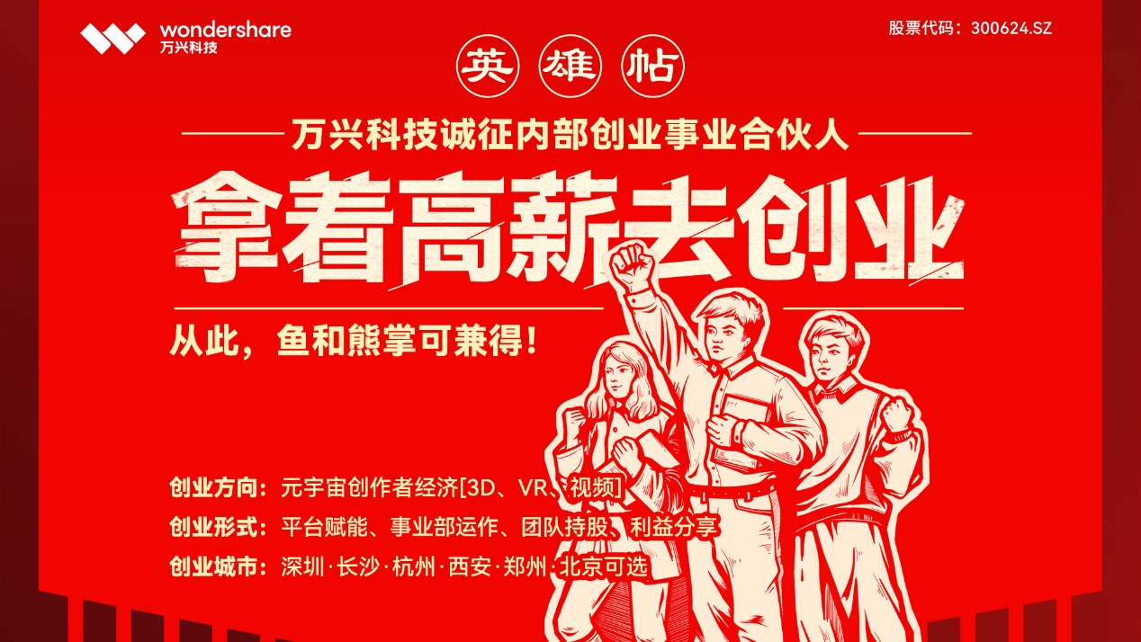 推出Wondershare Filmora的97国际科技,也在一连加码赋能创作者,拥抱创作者经济新时代。与此同时,97国际科技正全力推进“平台+创业者”的特色生长模式,面向全球高薪招募创业者,推出“拿着高薪去创业”的创业3.0政策,广邀各路“英雄”携手打造立异产品矩阵、构建立异创业生态。