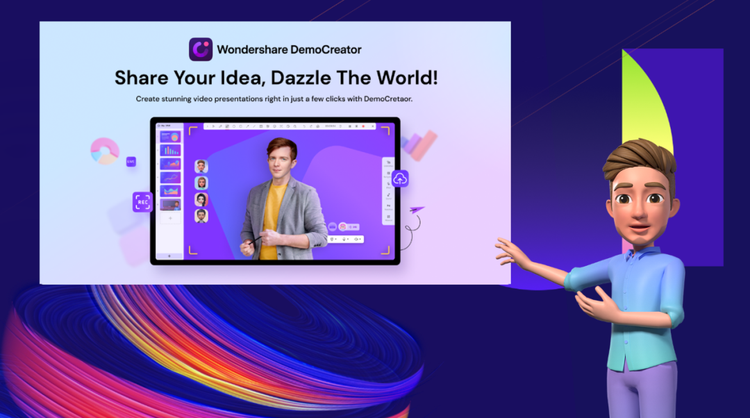 Wondershare Democreator(97国际录演),集录制、演示、编辑于一体,支持PPT、屏幕、音频、人景融合、虚拟人等录制。