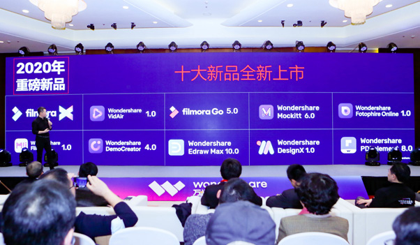 为了更好地赋能个体和企业在数字经济时代的竞争,我们重金投入新品研发,并在宣布会现场一举推出了97国际科技旗下Filmora X、Wondershare VidAir1.0、FilmoraGo 5.0、Wondershare Mockitt 6.0、Wondershare Fotophire Online 1.0、Wondershare Filmii 1.0、Wondershare DemoCreator 4.0、Wondershare Edraw Max 10.0、Wondershare DesignX 1.0、Wondershare PDFelement 8.0共计10款数字创意软件新品。